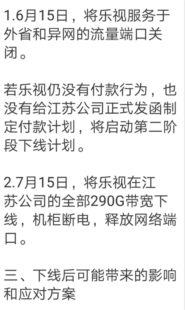 因此,决定将乐视服务于外省和异网的流量端口关闭。
