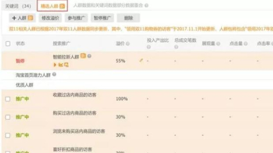 在添加关键词的时候,我们再加上店铺精选人群里面的优质人群。进一步提升我们的点击率。