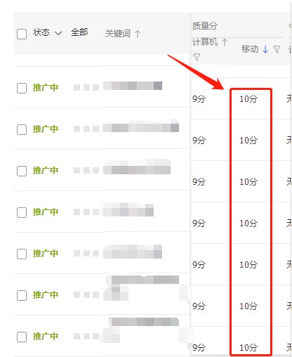 直通车要想拖价,一定要建立在高权重的基础上,最好实现所有关键词全十分,很难完成的话可以允许少量的9分词。