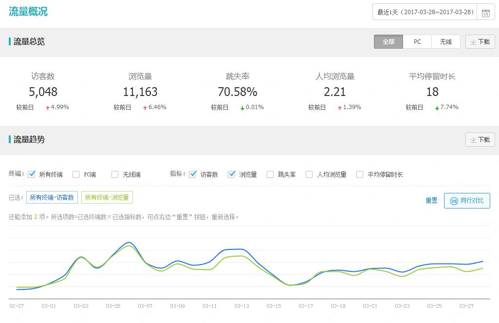当然这个指标要怎么判断它的好坏呢,很简单,那就是对比,没有对比是没有伤害的,并不知道自己差在哪里的,具体的方法就是使用生意参谋中的市场行情,行业大盘里面数据,筛选指标:访客数、收藏人数、加购人数。然后,收藏人数/访客数,加购人数/访客数,就可以得到大概的同行平均水平收藏率、加购率,从而进行对比和判断。