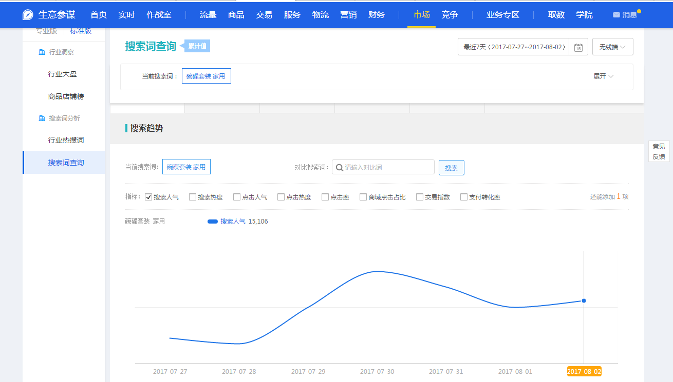 2.看引流词效果,如果近段时间引流词引流能力下降就去查找这个词的市场搜索人气,如果是人气下降就换掉,如果人气没降就说明是竞争增大了,我们就需要去做关键词的权重。