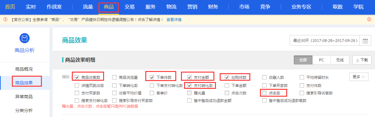 第三种,加购率,加入购物车的买家证明对商品的购买意图非常明确,可能是个人原因,后面购买或者是商品还差某一个小点没有打动她,离转化是非常接近了,那么通过这个数据我们同样可以分析出来他是否是潜在的爆款