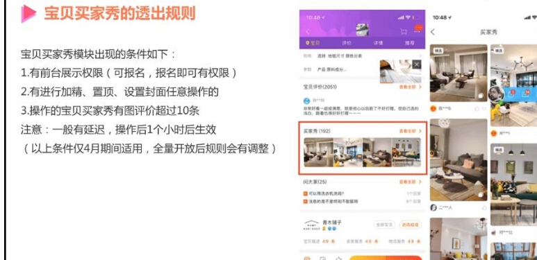 注意点:伴随着宝贝买家秀的开放进度,5月将全面覆盖