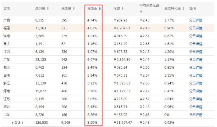 2、直通车已经开了一段时间的掌柜可以在直通车报表里面找到计划,进去后点击地域列表勾选转化或者点击维度即可先筛选表现好的地域。