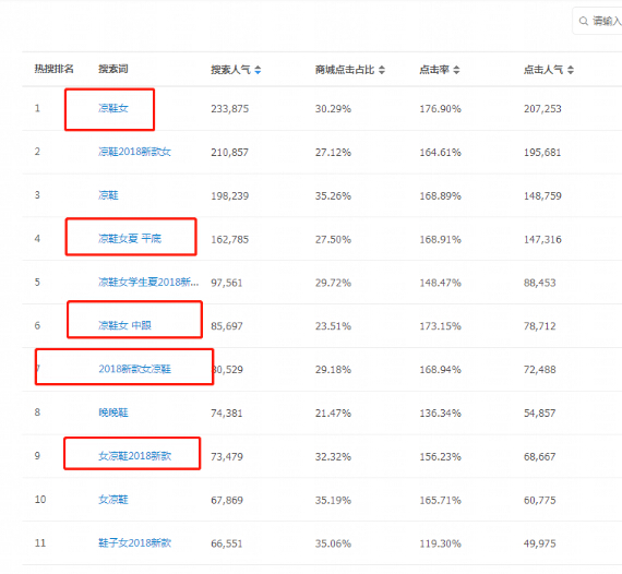 单从排名来看,拆分搜索关键词:高跟、凉鞋、女。但是我们搜索的是连续关键词并不是单个词根所以在排名上关键词连续排名靠前,既不是坑位大小,也不是产值多少,连续性词根关键词是排名的关键,排名会靠前。基于这一点的标题,通过市场行情热搜词排名,把搜索量高的关键词整体添加标题。