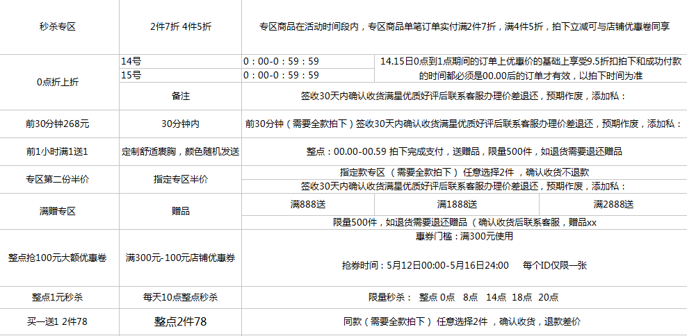 饰品店铺:活动冲销量,前2小时候买二送1(返最低价格款,收货返差价等)。