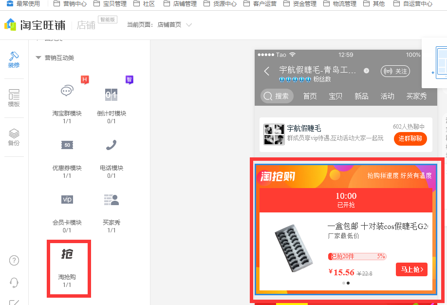 点击店铺装修,添加模块 ,增加即可;