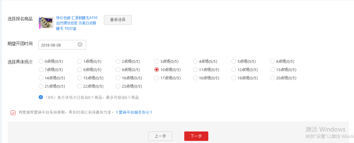 每次报名延后3天,每个排期时间段可报名5款宝贝,最后点击保存即可。